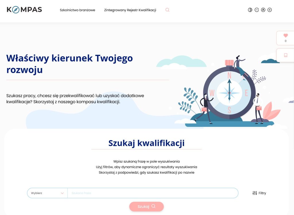Kompas to kolejne narzędzie ZRK, które w oparciu o kwalifikacje oferuje wsparcie w rozwoju edukacyjnym i zawodowym, ułatwia wybór dalszej ścieżki uczenia się lub kariery zawodowej.