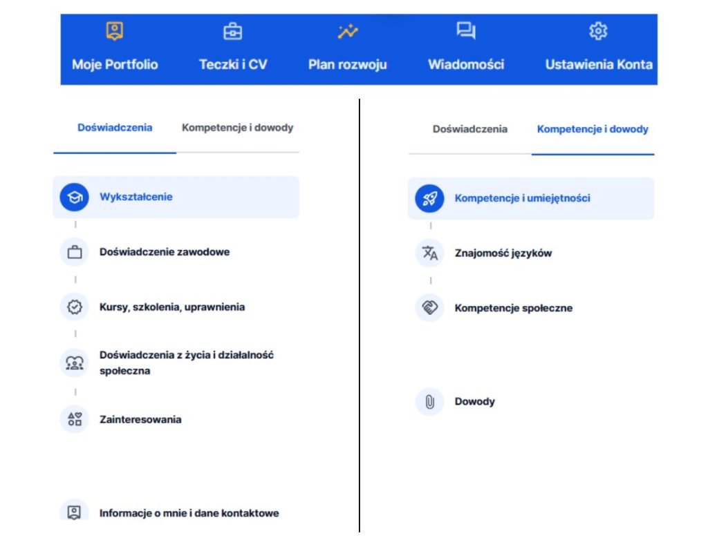 Moje Portfolio to darmowe narzędzie cyfrowe, które służy do gromadzenia dowodów na posiadanie kompetencji (wiedzy, umiejętności i kompetencji społecznych), a także określania planów rozwoju. Pozwala na przygotowanie e-portfolio oraz CV.